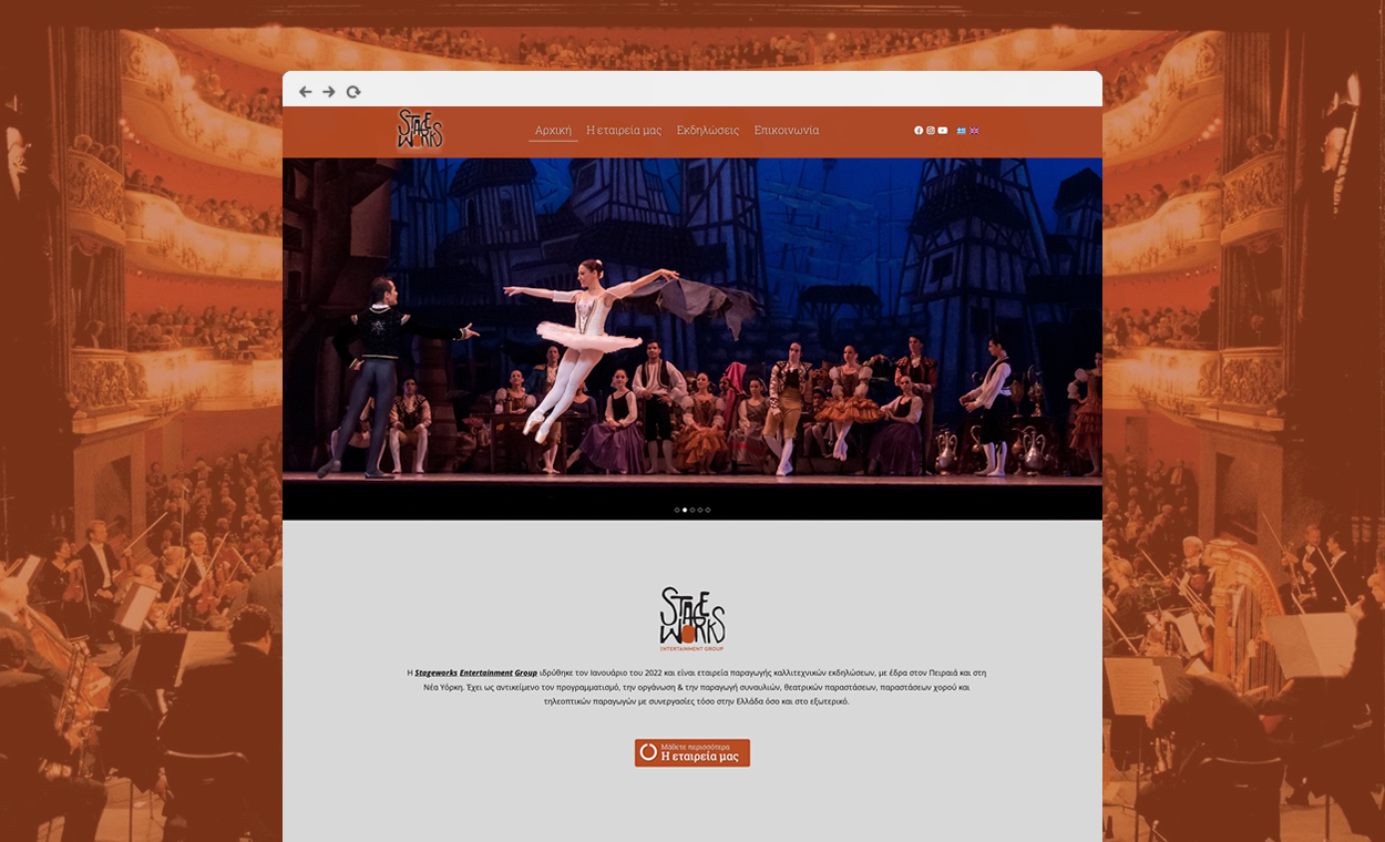 Η ιστοσελίδα stageworks.gr δημιουργήθηκε με στόχο τη σύγχρονη, αξιόπιστη και φιλική προς τον χρήστη παρουσίαση των υπηρεσιών που προσφέρει.